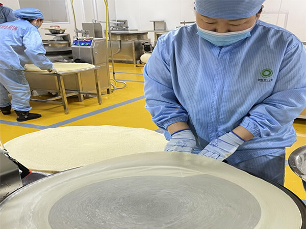 公司建立的国家级无菌净化车间,严格按照食品生产工艺流程的要求,规划设置了包材暂存间、包材消毒间、内包材消毒暂存间、风淋间、磨浆间、摊制间、叠制间、发酵间、外包间、验收区、合格区、洗手消毒间、更衣间、物流通道等等。并在厂内安装多个摄像头,全程监控进料、配料、生产到包装,做到全程监控的严格标准。